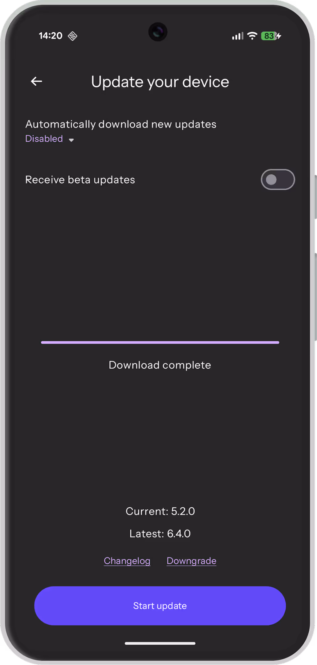 Aggiorna il tuo dispositivo direttamente dall’app.